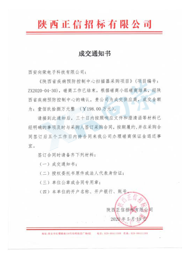 當(dāng)前位置 > 主頁 > 新聞中心 > 恭喜西安向榮中標(biāo)陜西省疾病預(yù)防控制中心掃描器采購項(xiàng)目