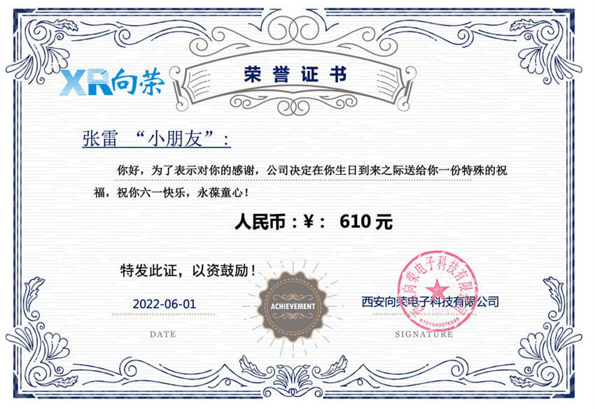 恭喜張雷獲得六一特殊生日獎(jiǎng)勵(lì)610元