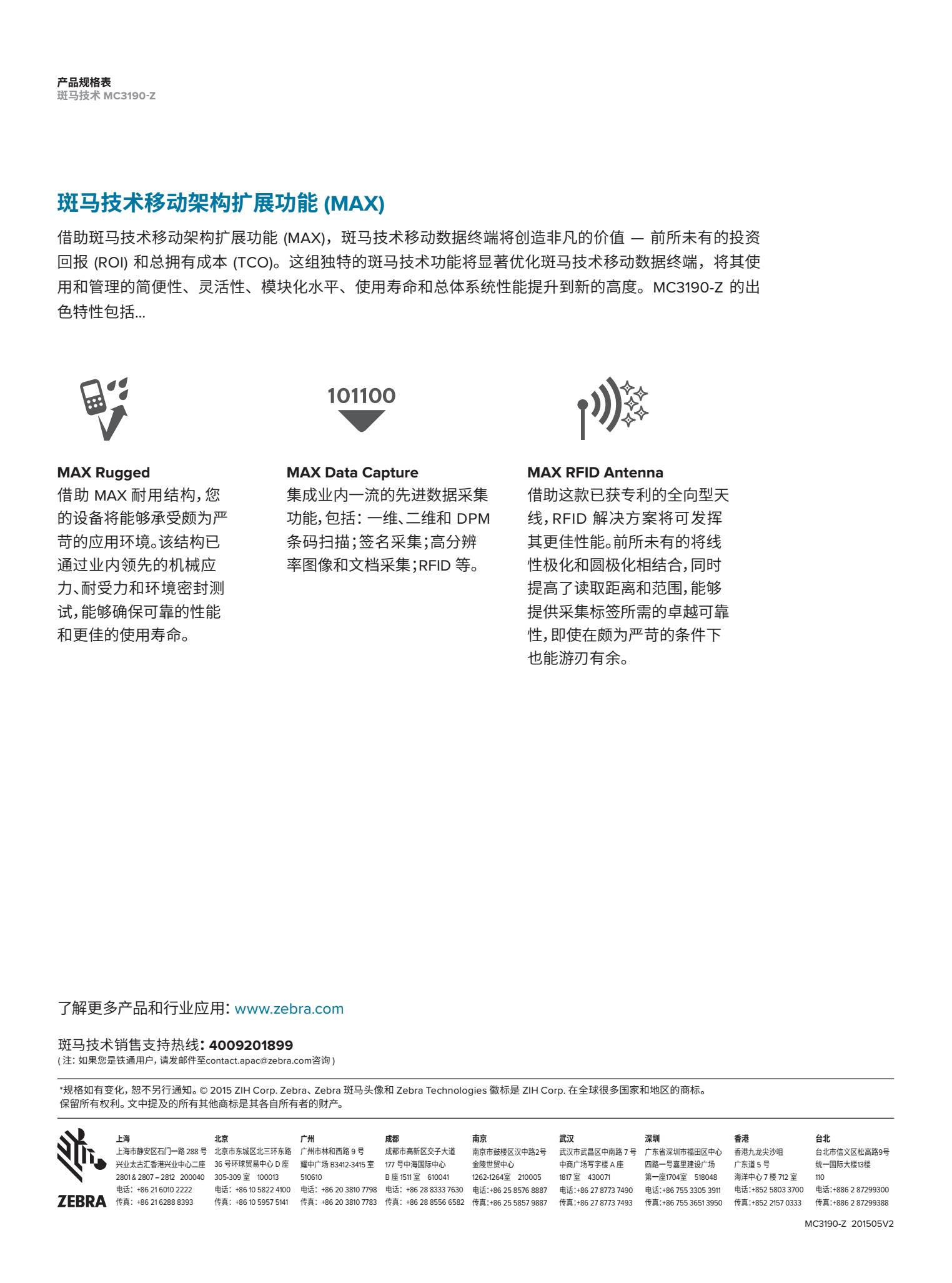 MC3190-Z 具有耐用設計和優異性能,還增配了先進的高效能 RFID 讀取器引擎,可實現更快的讀取速度和更大的吞吐量。
