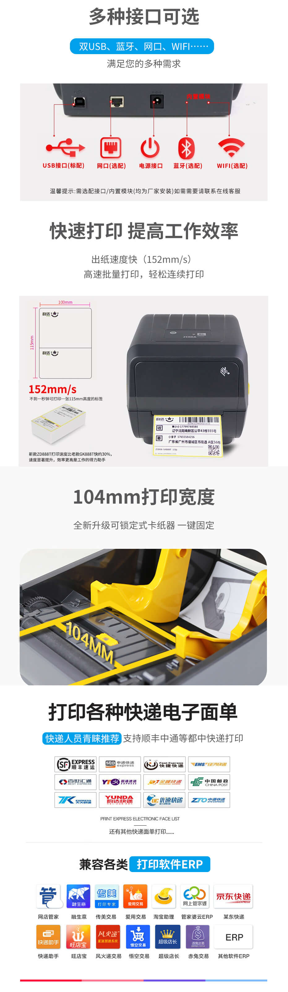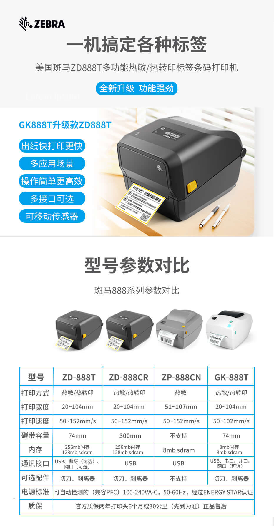 產品簡介: Zebra ZD888打印機采用小巧、節省空間的設計。 小容量,大功能~ 使用強大的32位處理器,可快速地打印標簽,具備大容量內存,可實現更多的圖片儲存、更長的標簽格式以及更快的處理速度。 支持EPL和強大的ZPL編程語言——能夠更便捷地與其他斑馬打印機集成一體。 剝離分配器和切紙器選件擴展了ZD888打印機功能的多樣性,可滿足更多不同類型打印機的要求。