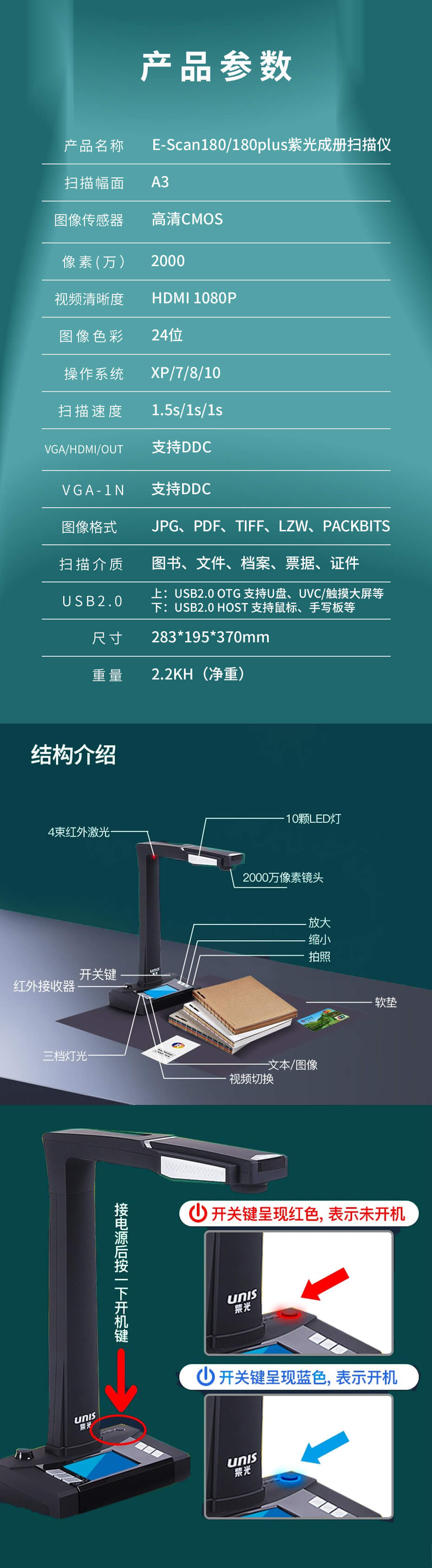 圖像處理功能: 視頻展臺 智能糾偏裁邊 智能曲面展平 OCR 支持去手指印.