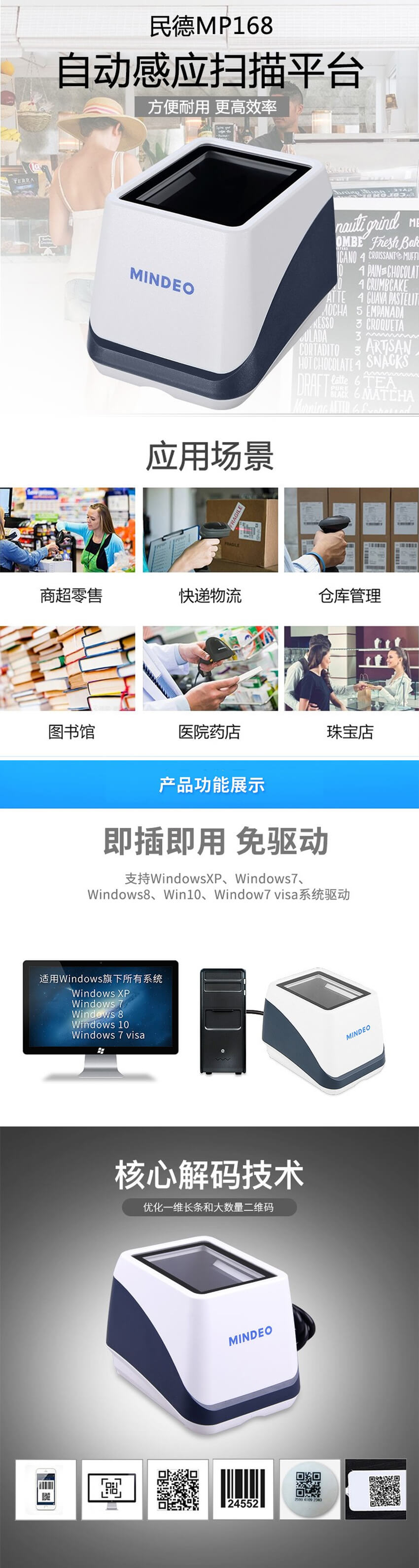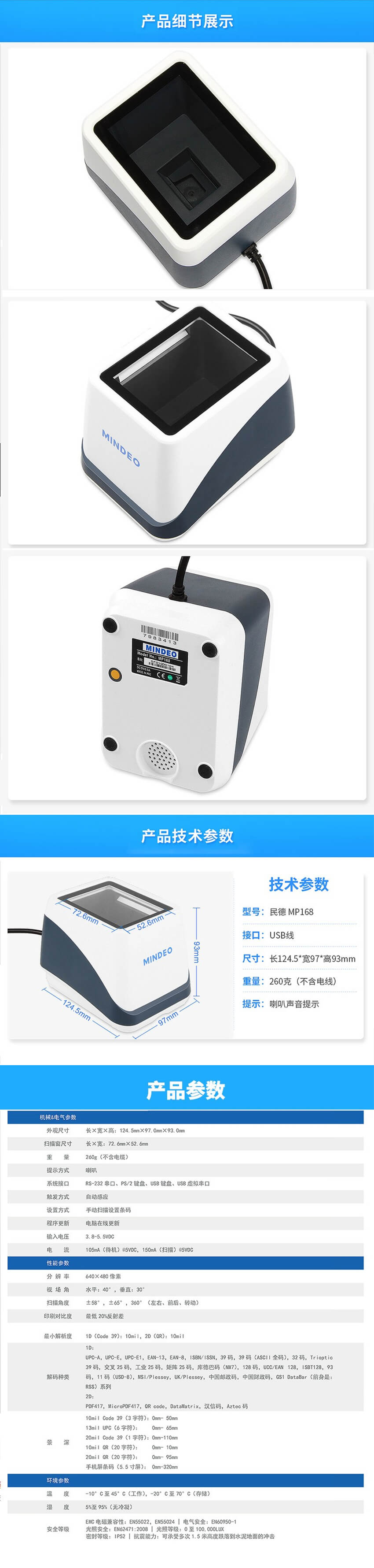 民德(MINDEO)MP168S 一二維碼條碼掃描器