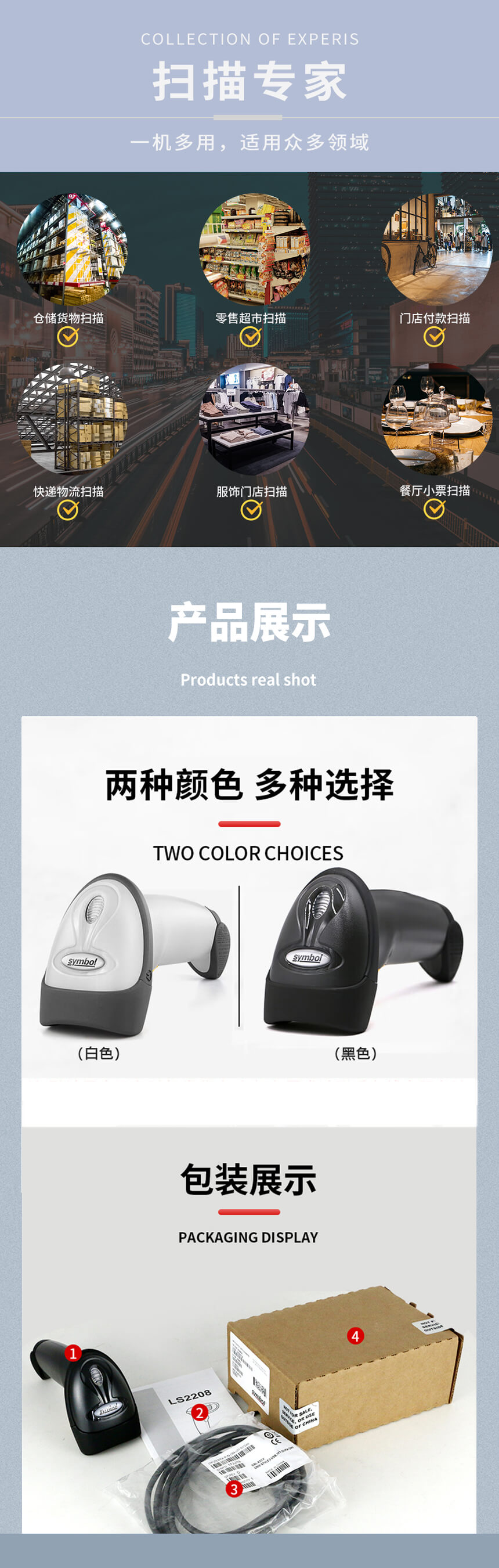 產品簡介: 斑馬(ZEBRA)symbol訊寶 LS2208 一維激光條碼掃描槍 掃描器 快遞倉庫盤點條碼槍 LS2208-SR單槍,即插即用,耐用穩定,提速工效。