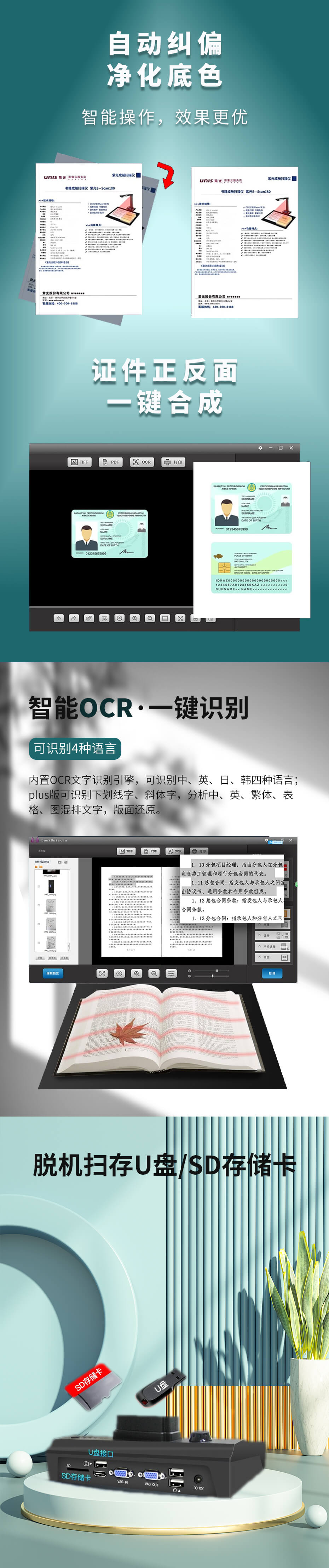 圖像處理功能: 視頻展臺 智能糾偏裁邊 智能曲面展平 OCR 支持去手指印.