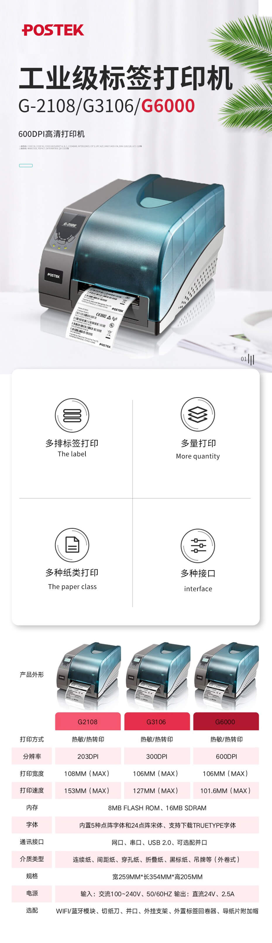 博思得(POSTEK) G-2108/G3106/G6000 工業(yè)級標(biāo)簽打印機(jī)